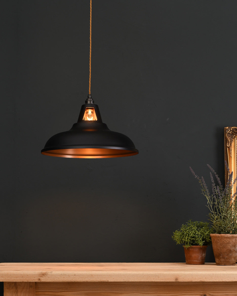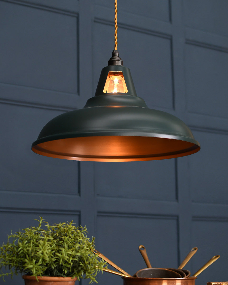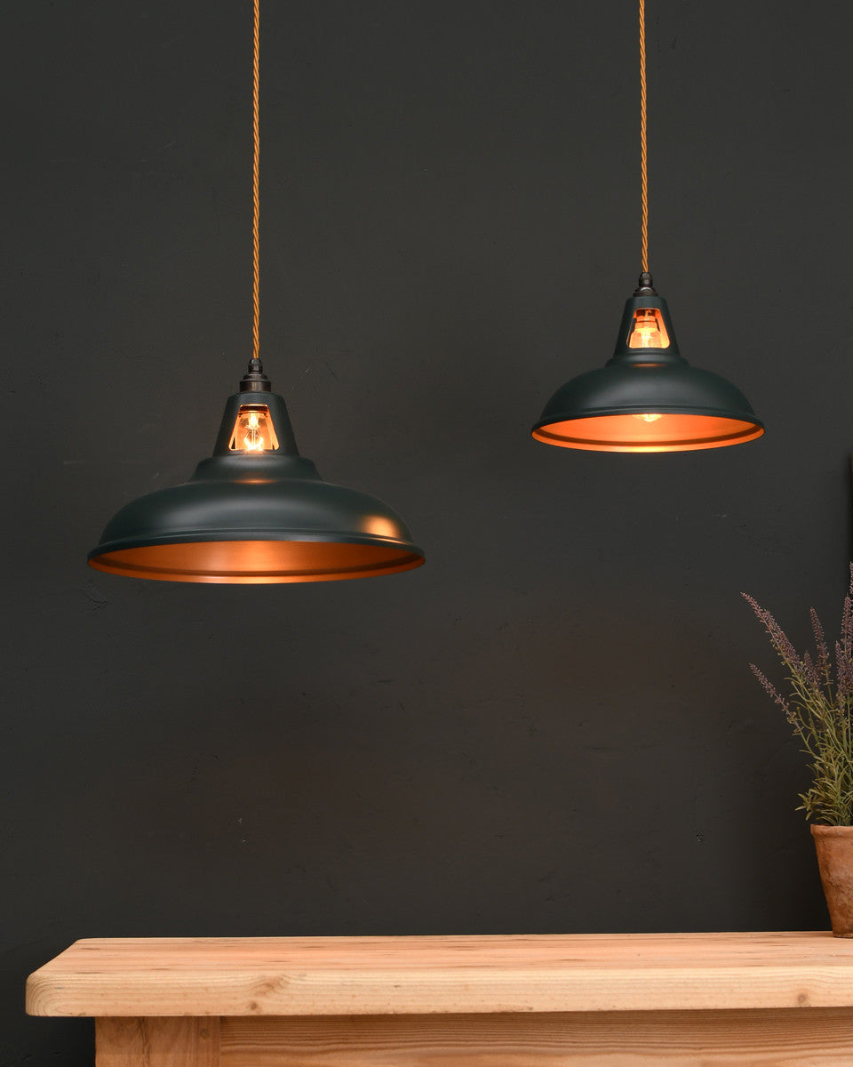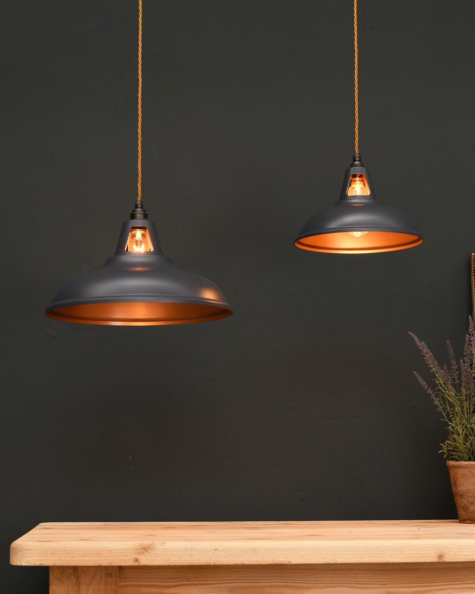 Our range of pendant lights are designed to add visual impact to your room. The stylish finishes to the shades, ranging from polished metals to contemporary colours, add a modern twist to the vintage industrial form. The coloured pendants can be chosen as a feature in a minimalist space, while our prismatic pendants, inspired by vintage railway lights, possess a versatility that makes them suitable for any style of interior.