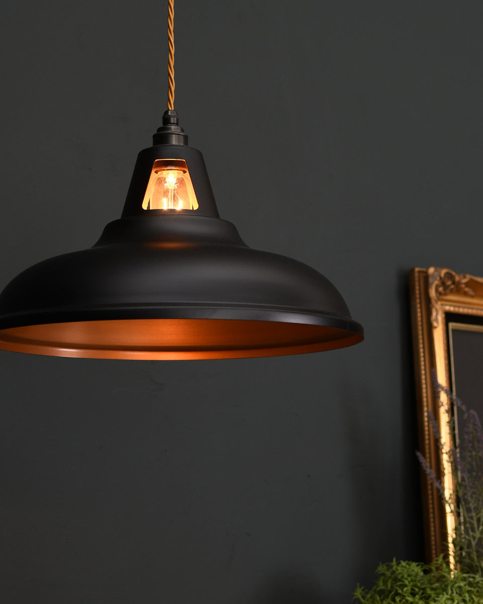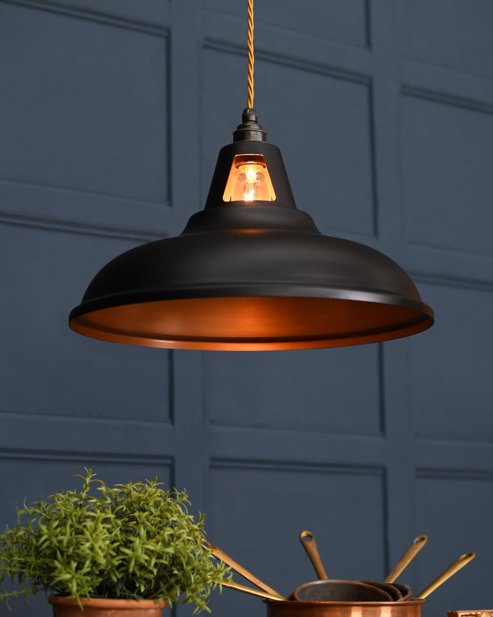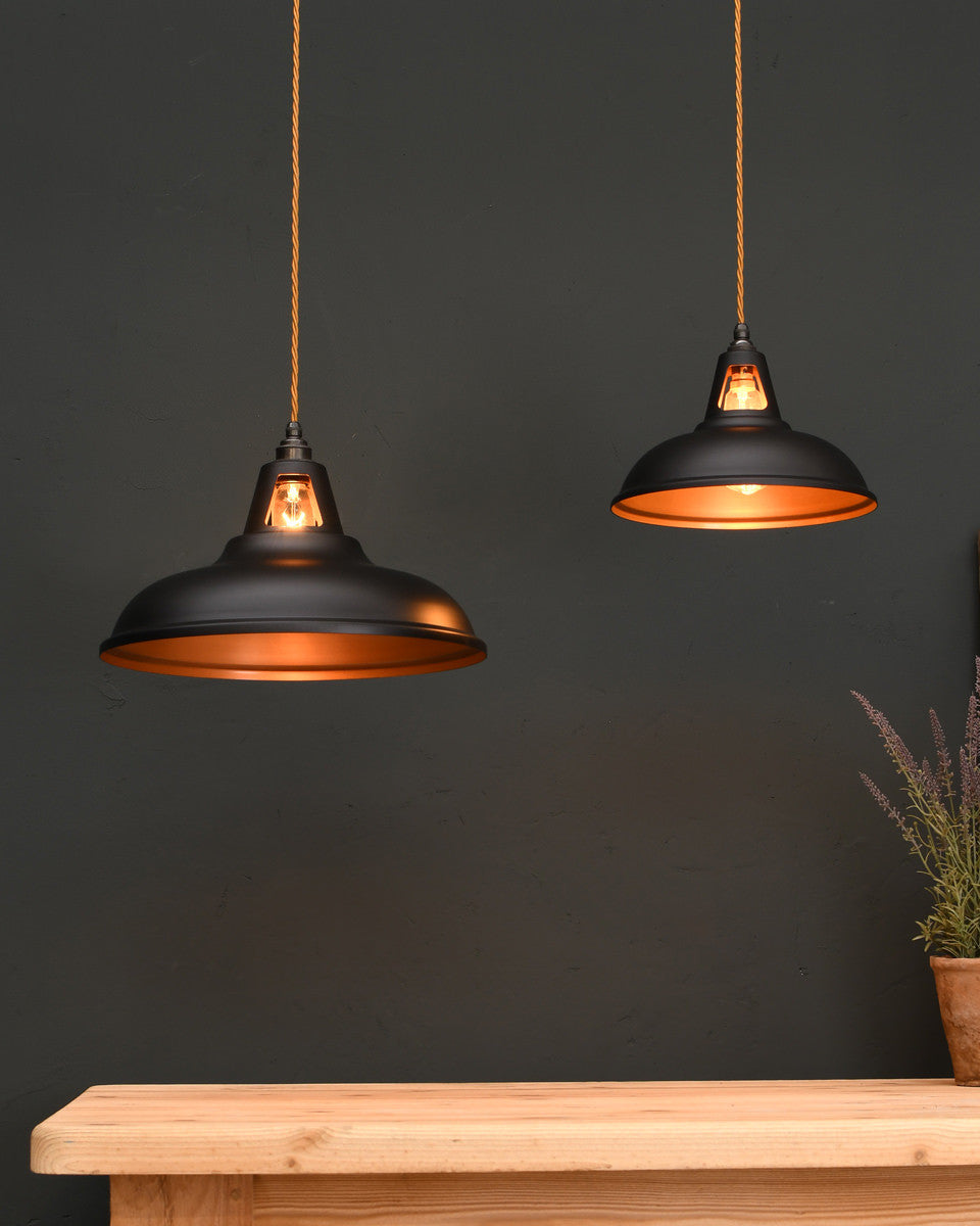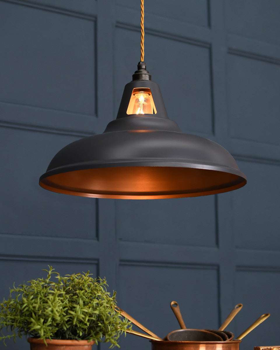 Our range of pendant lights are designed to add visual impact to your room. The stylish finishes to the shades, ranging from polished metals to contemporary colours, add a modern twist to the vintage industrial form. The coloured pendants can be chosen as a feature in a minimalist space, while our prismatic pendants, inspired by vintage railway lights, possess a versatility that makes them suitable for any style of interior.