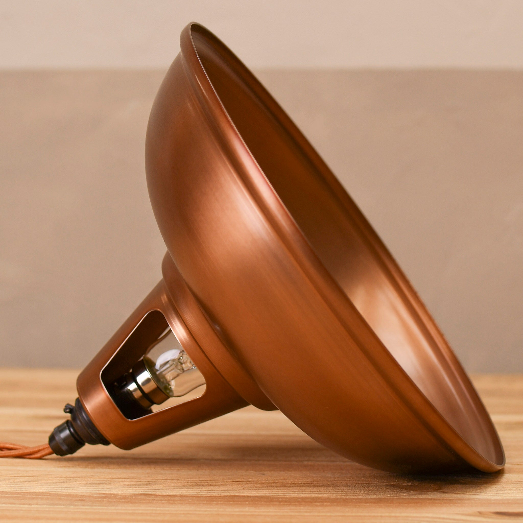 Made in the UK and inspired by classic 1930s factory lighting. Finished with an aged copper effect this pendant requires no maintenance and will not tarnish, fade or rust. This industrial style pendant light is ideal for modern domestic interiors or retro style cafes and bars.