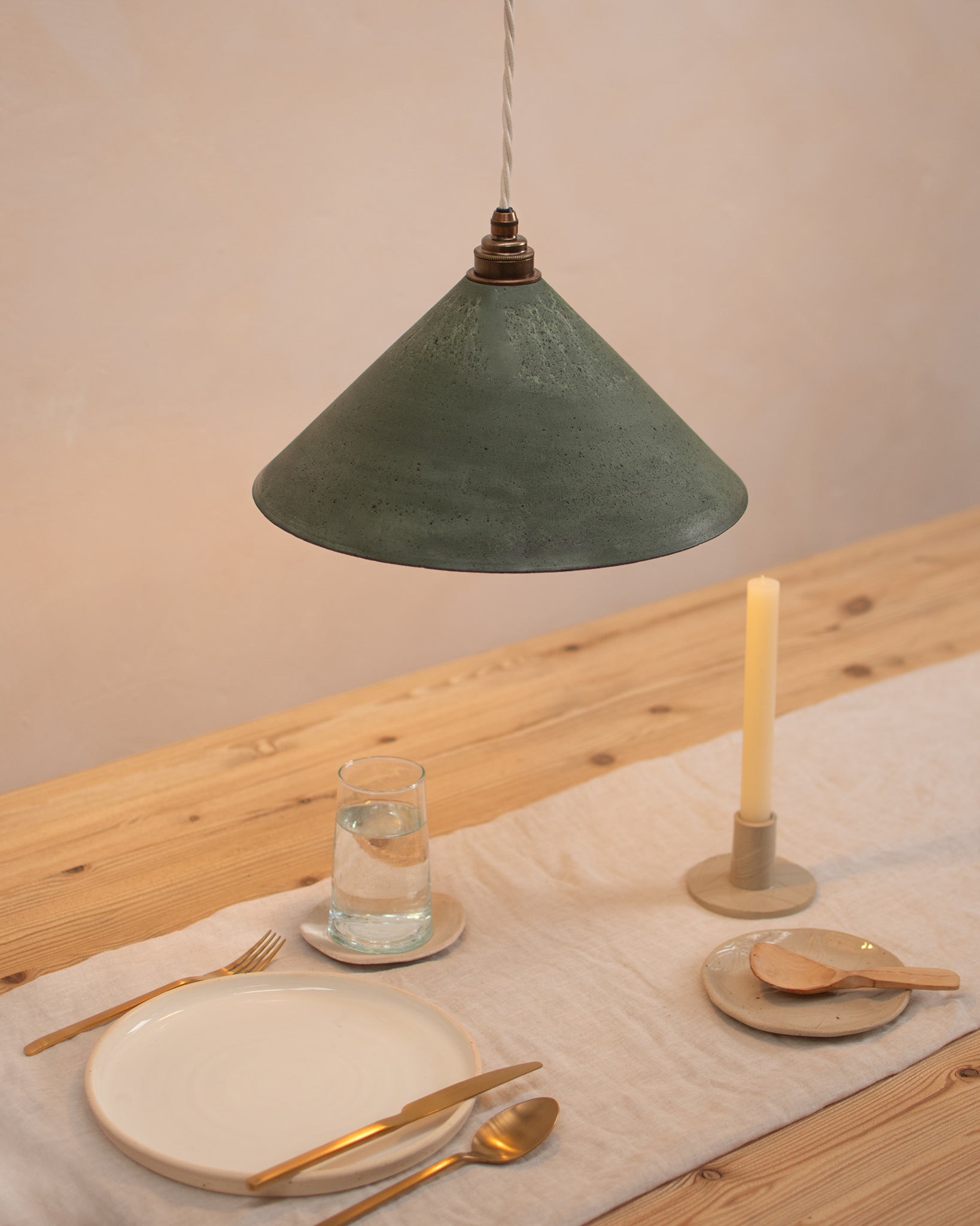 Each light has been poured, sanded, and coated in a protective, natural oil. Due to the handmade nature there may be pleasing variations in surface, pattern and colour.
